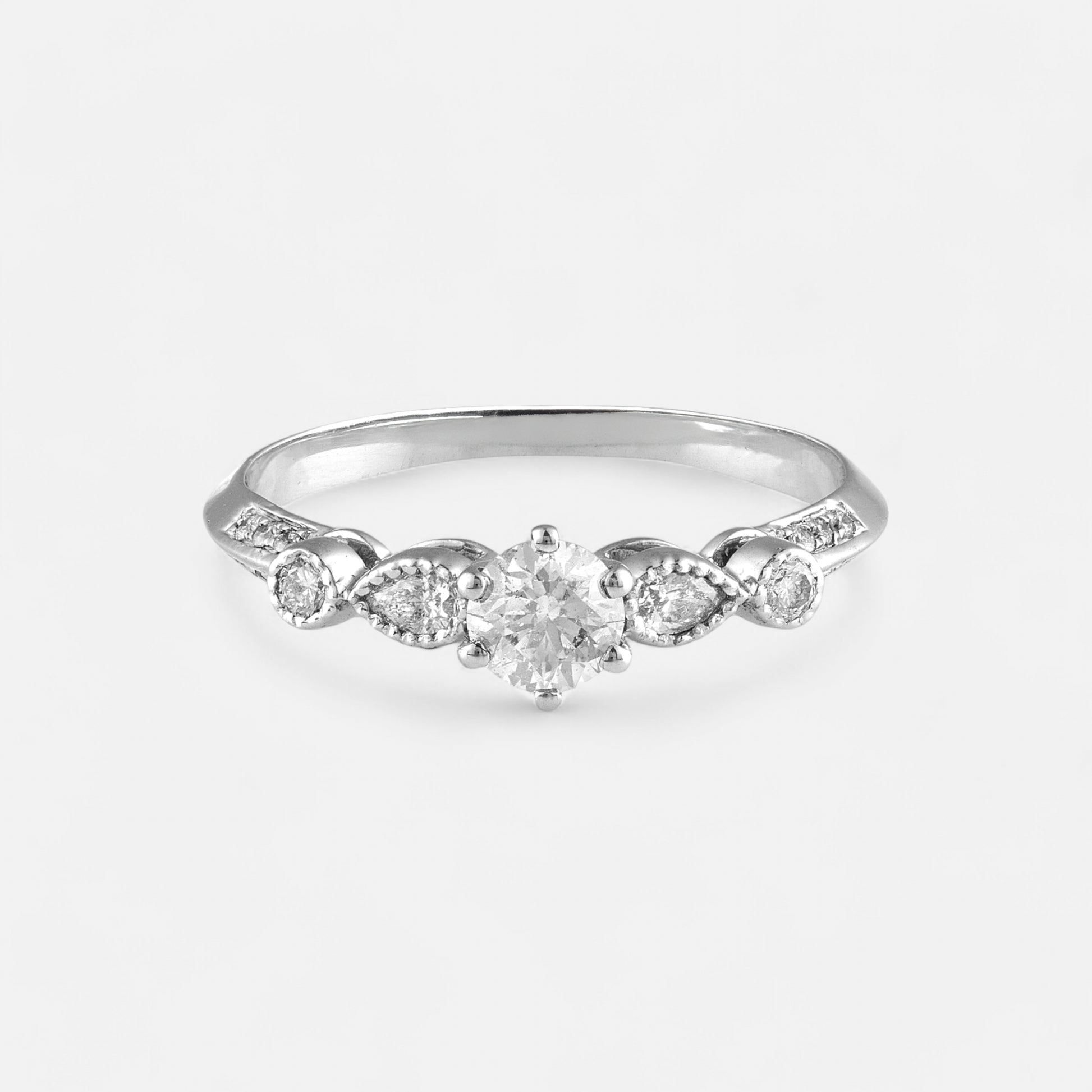 - Additional Diamonds: Pear cut and round brilliant cut on the shank