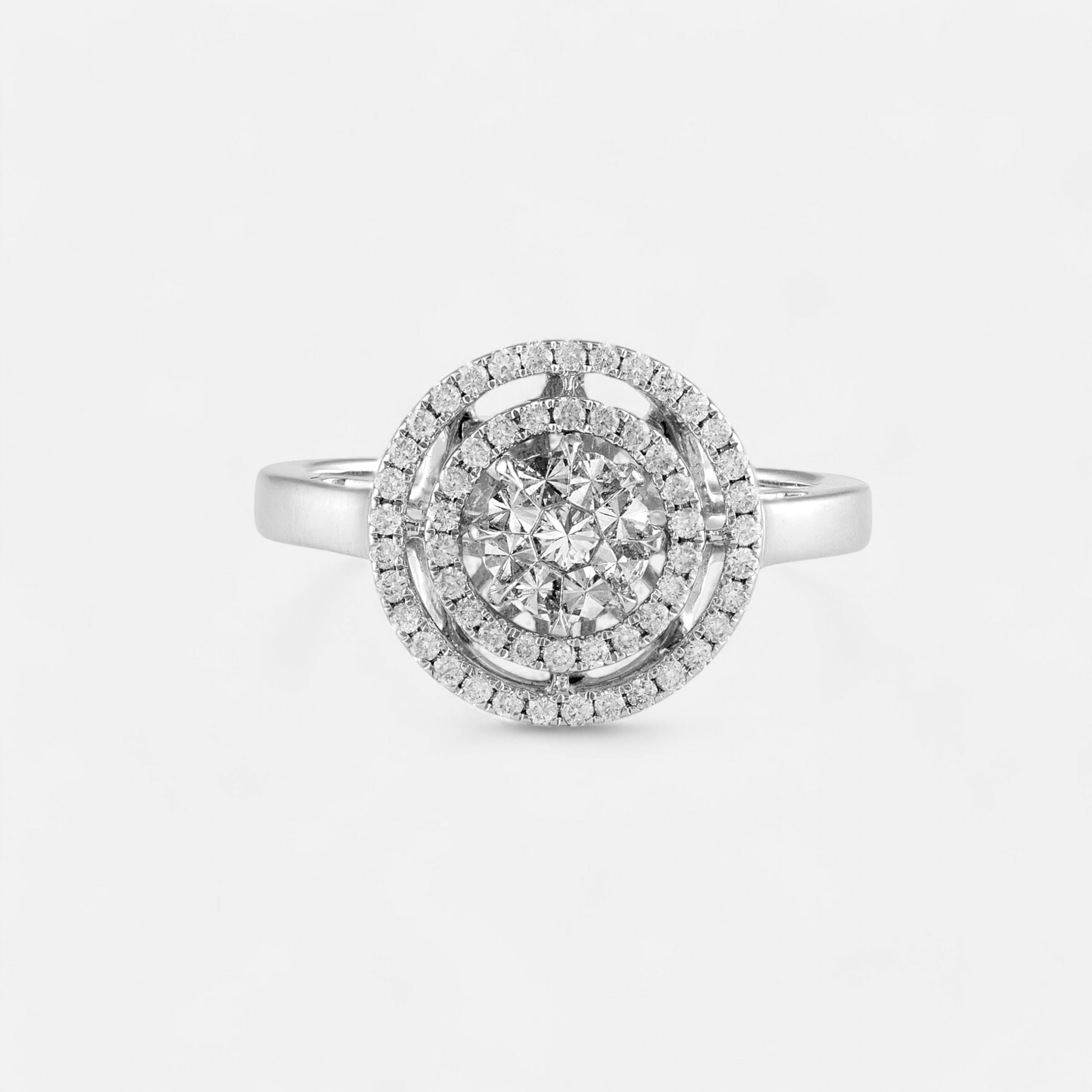 - Halo Diamonds: 55 round diamonds